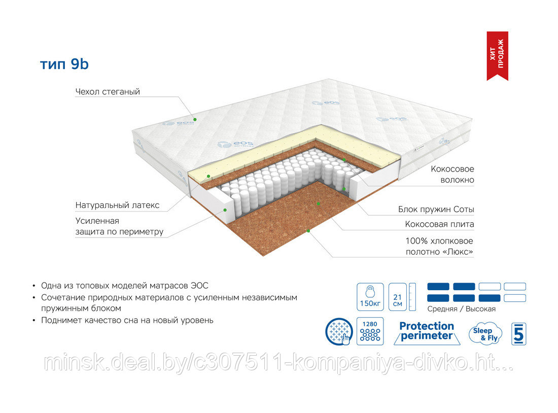| Тип пружинного блока матраса | независимый пружинный блок "пчелиные соты" |